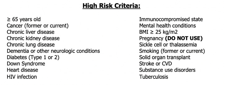 Yes No. Are at high risk for progressing to severe COVID-19 and/or hospitalization. (must meet 1 or more; select from below)
